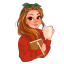 The woman peers up at you. Her eyes are the same colour as her hair, glinting red at you in the dim light of the shop.